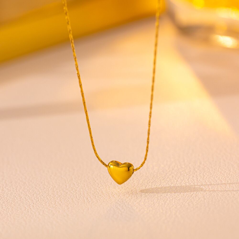 小さくてかわいらしいぷっくりハートが特徴のネックレス。