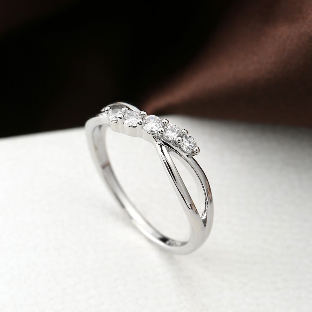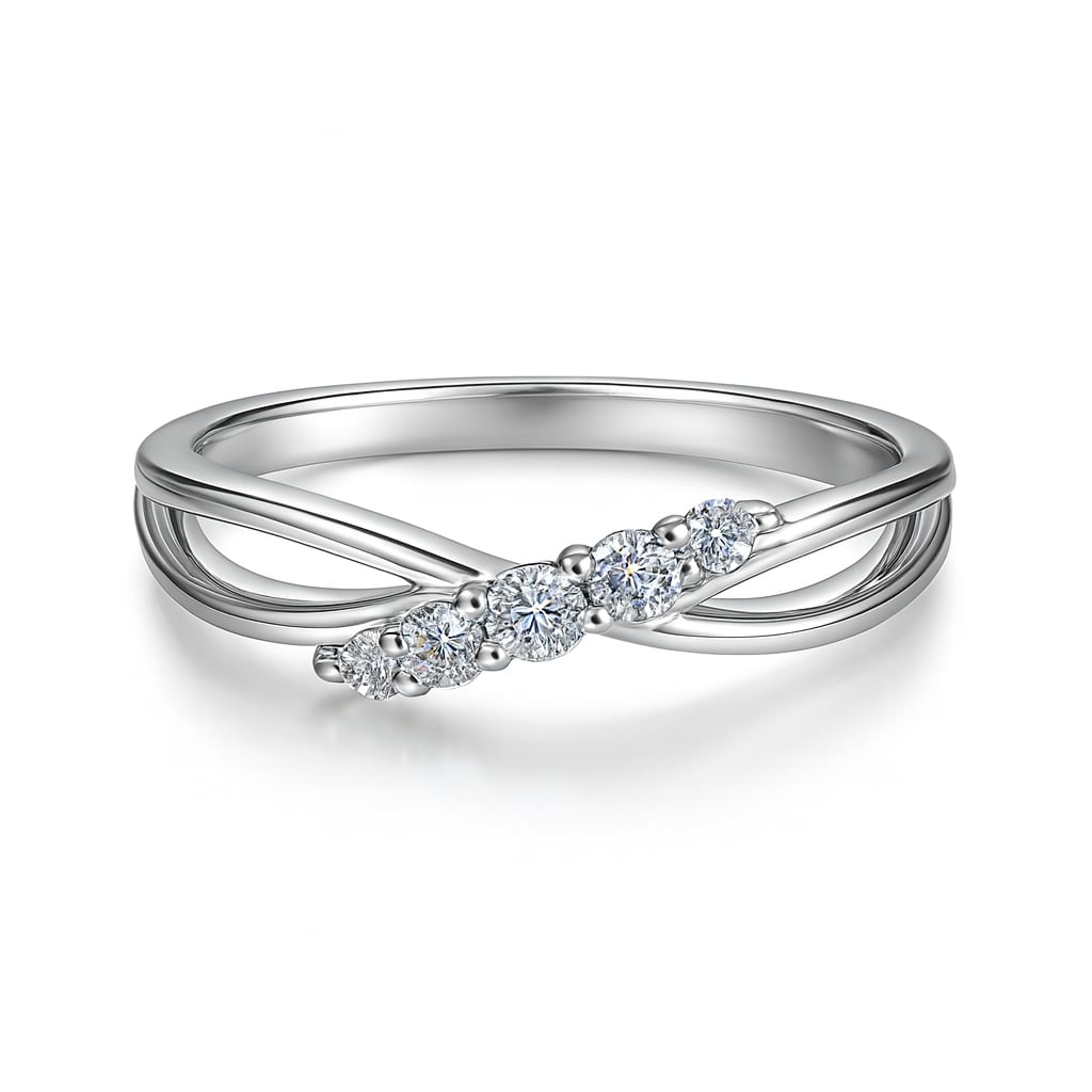 リング アレルギー対応 グラデーション 5石 CZダイヤ クロス デザイン シルバー コーティング