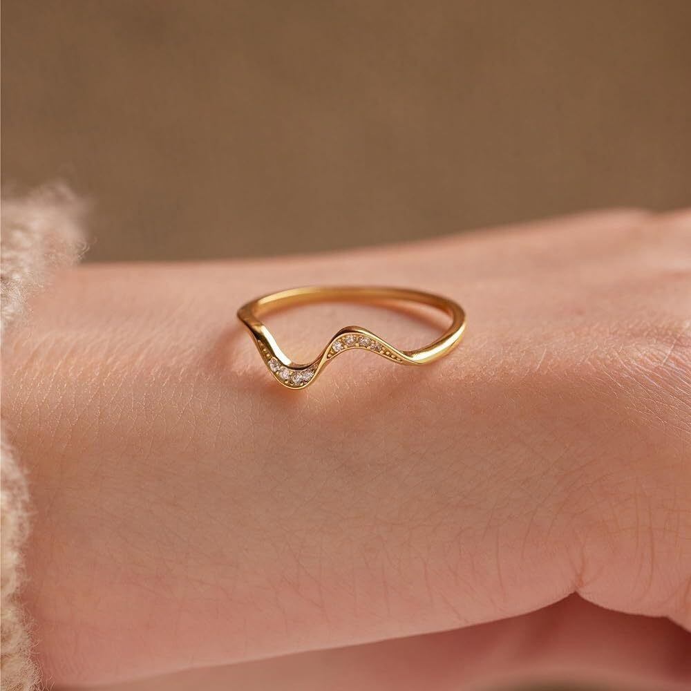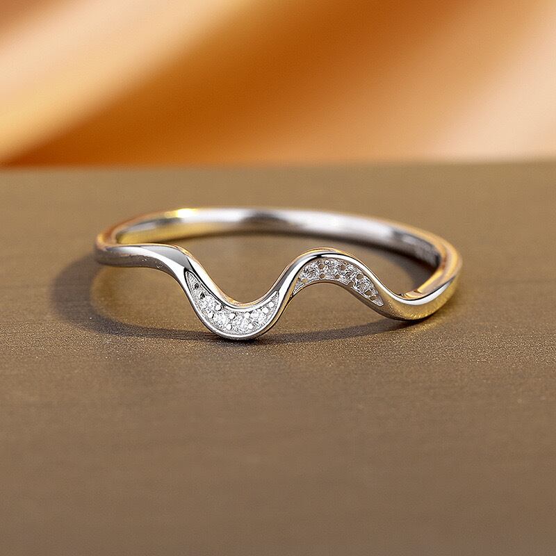 リング アレルギー対応 フリル ウェーブ シルバー コーティング ピンク ゴールド 小粒 CZ ダイヤ 華奢