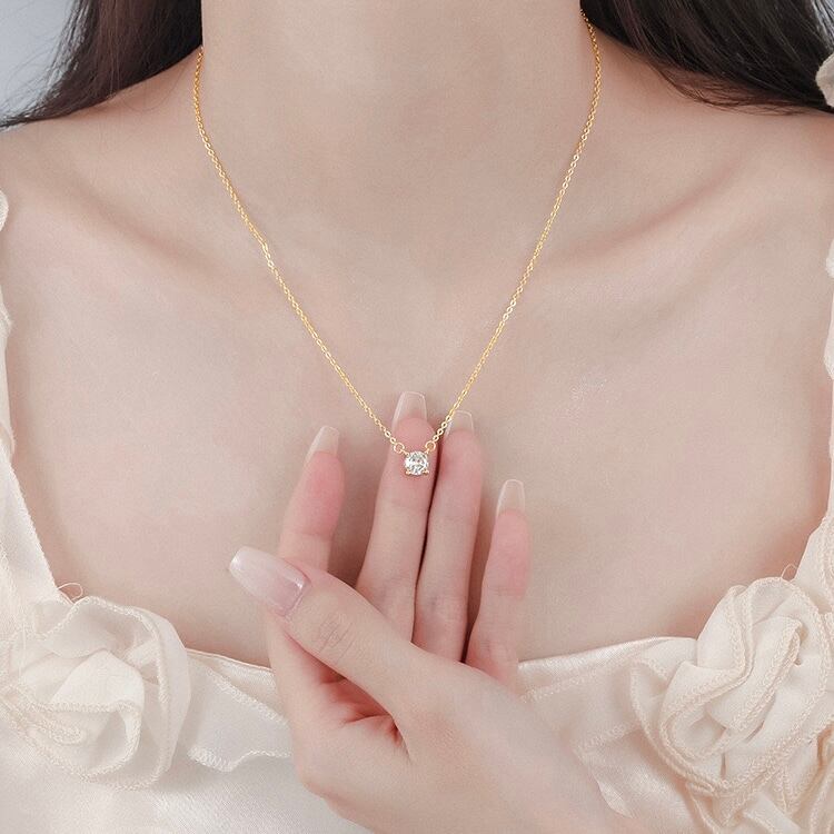 アレルギー対応 ネックレス シンプル 一粒 一石 CZ ダイヤ シルバー コーティング ゴールド 両吊り