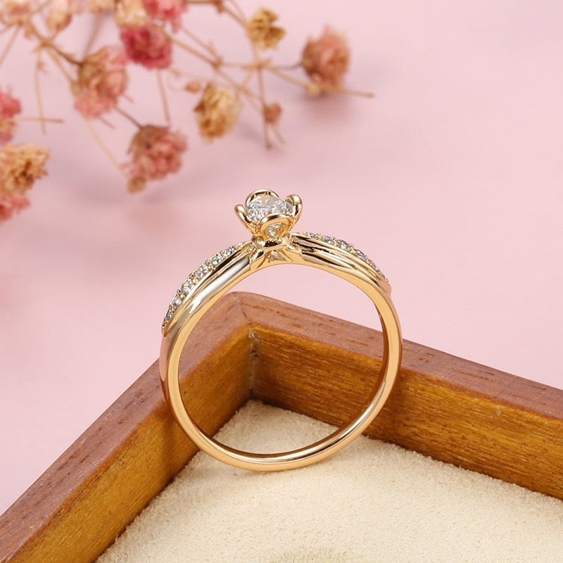 小花のデザインにセッティングされたCZダイヤが光を受けてキラキラと輝き、女性らしい存在感を引き立てます。