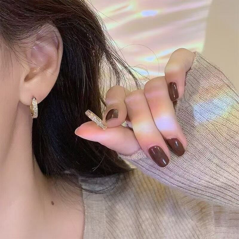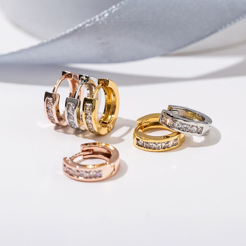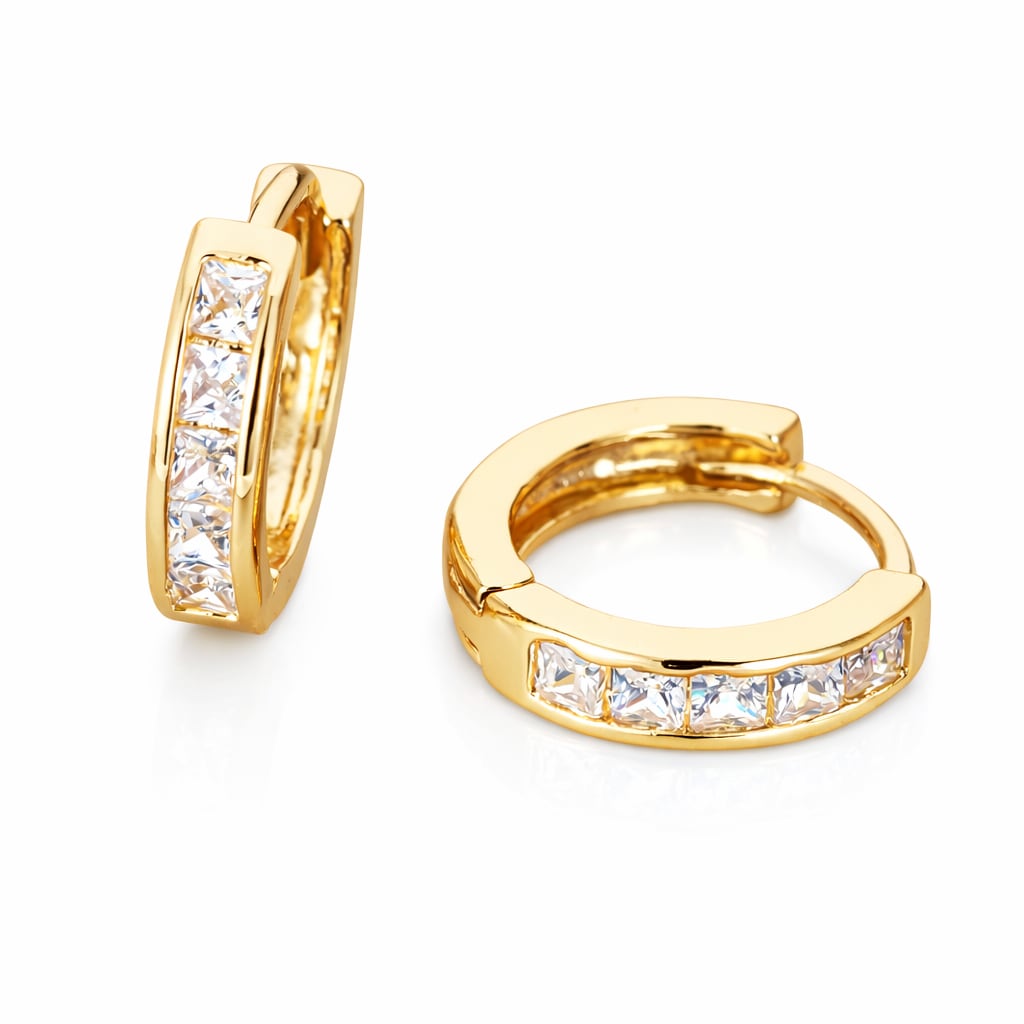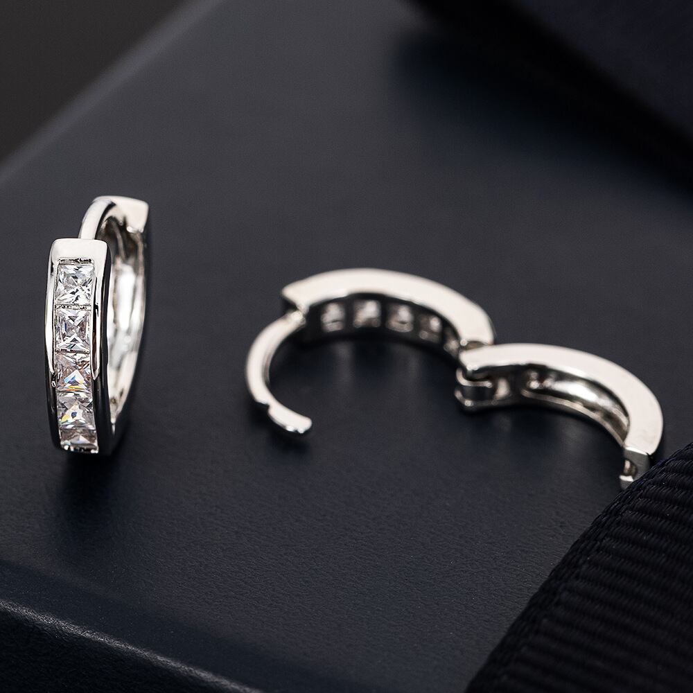 上品なスクエアカットCZダイヤが輝く、洗練されたリングピアス。
