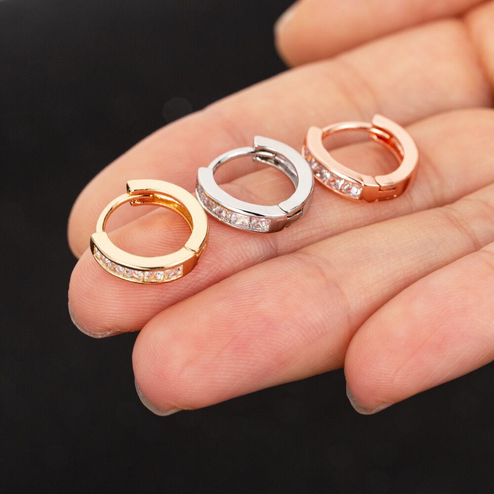 リングピアス 12mm スクエアカット CZ ダイヤ シルバーコーティング 金属アレルギー対応 フープピアス レディース メンズ シンプル 上品 ピンク ゴールド