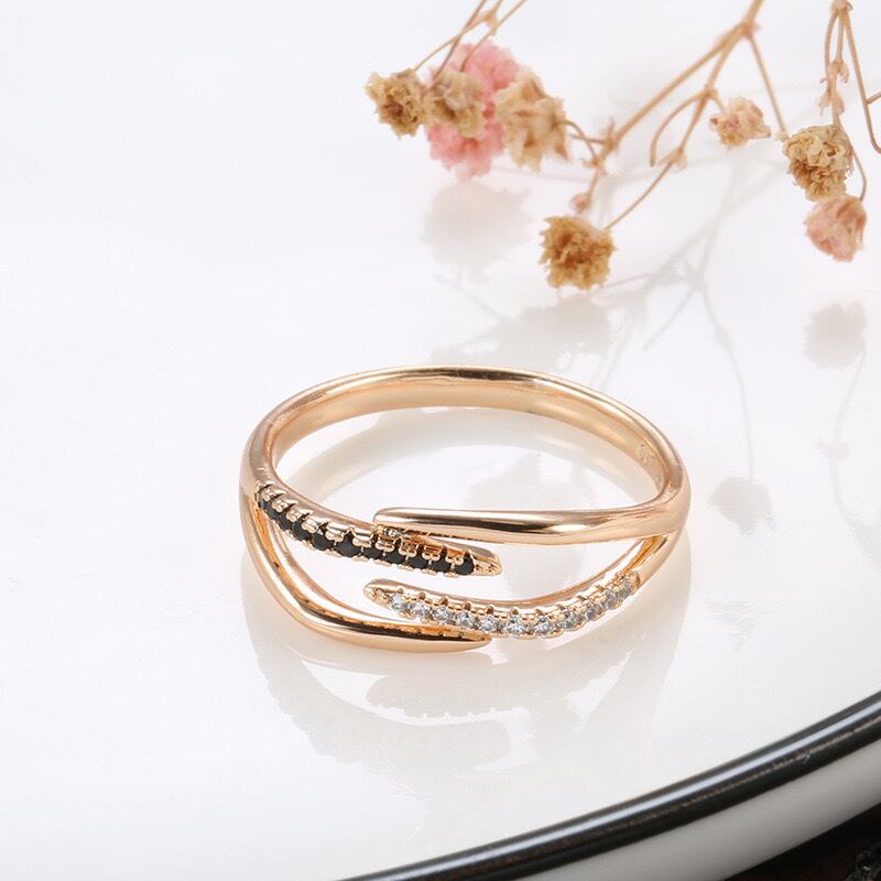 14KGP アンニュイ 小粒 ブラック 黒 ジルコン ローズゴールド リング