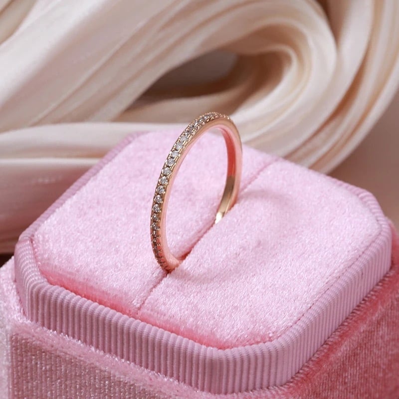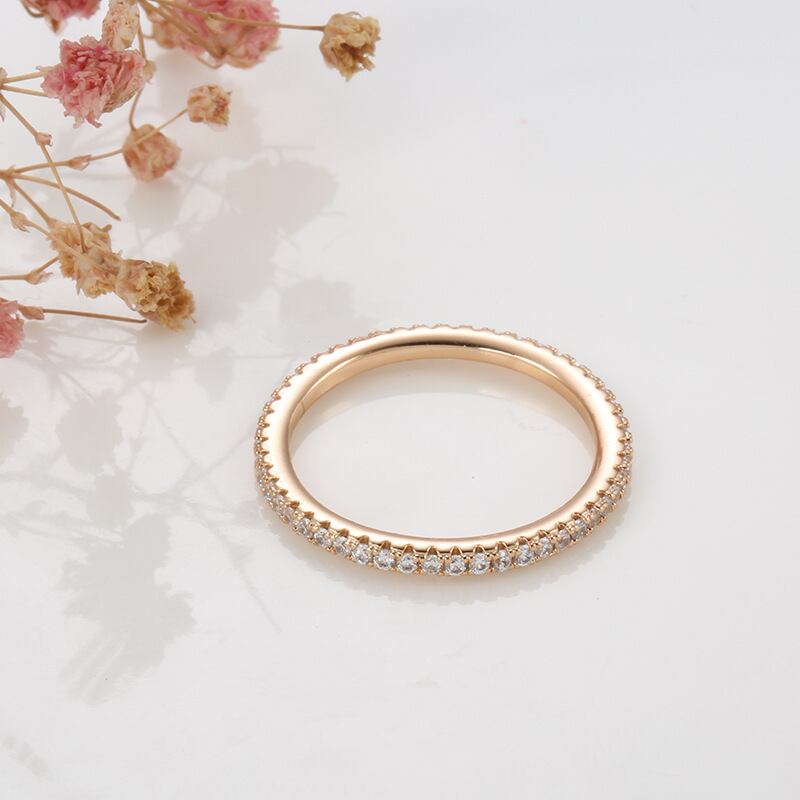 どの角度から見ても美しい輝きを放つ小さなCZダイヤが散りばめられたフルエタニティデザインは、どんなコーディネートにもワンランク上の華やかさをプラスしてくれます。