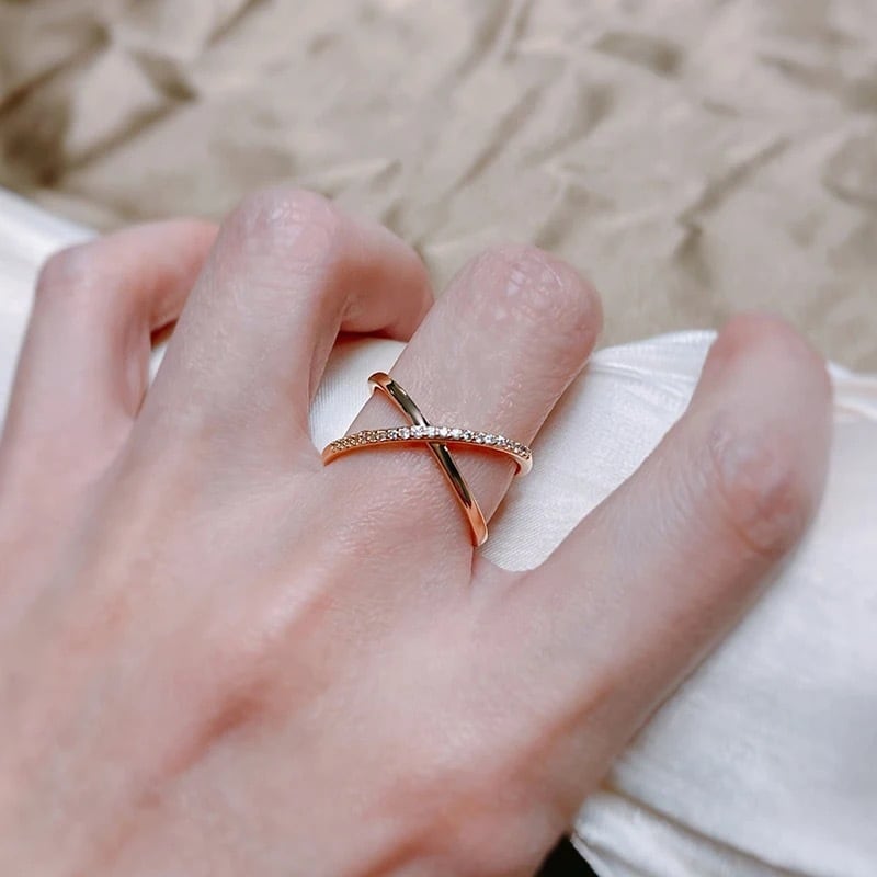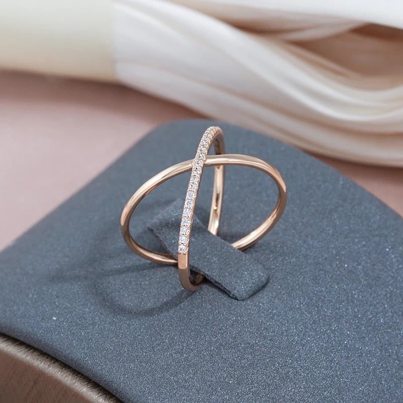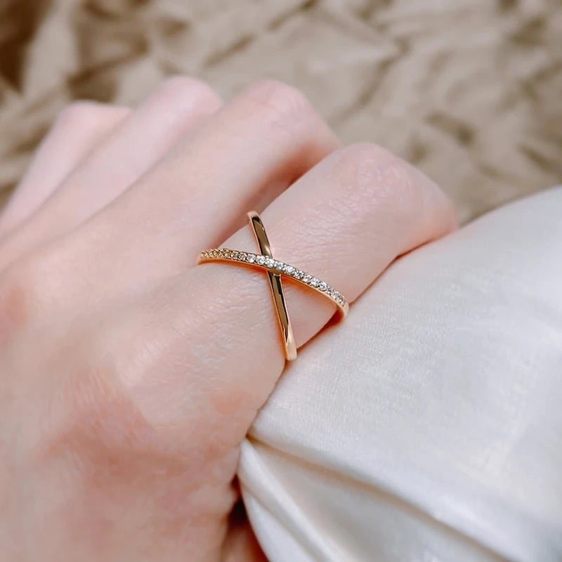14KGP リング アレルギー対応 14金 金メッキ 高級感 ローズゴールド CZ ダイヤ X クロス 華奢