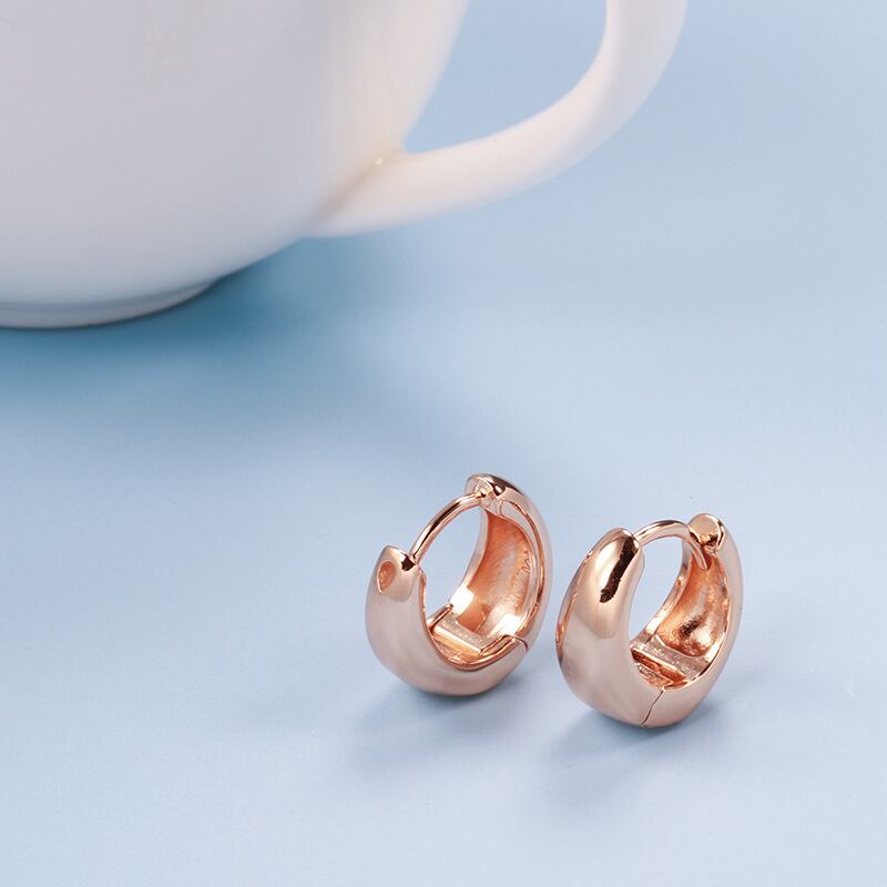 しっかりとした高品質の華やかな印象を与えるローズゴールドカラーのフープピアスです。