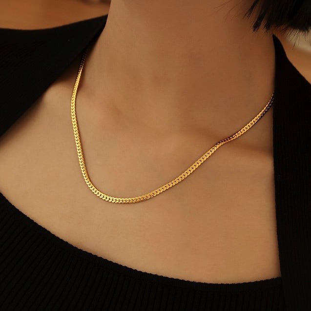 スネークチェーンがクールでスタイリッシュな印象を与え、どんなコーディネートにもマッチします。