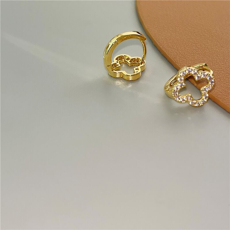 リング ピアス アレルギー対応 フラワー 花 クローバー シルバー コーティング ゴールド 小粒 CZ ダイヤ
