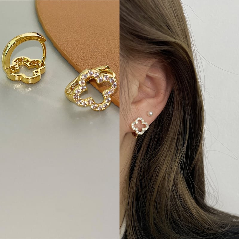 人気のクローバーのデザインが、どんなスタイルにもマッチする大人かわいいピアス。
