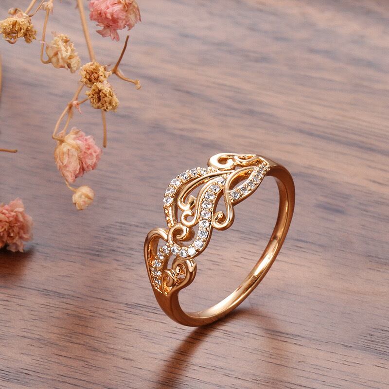 14KGP リング アレルギー対応 14金 金メッキ 高級感 ローズゴールド CZ ダイヤ 透かし彫り アラベスク