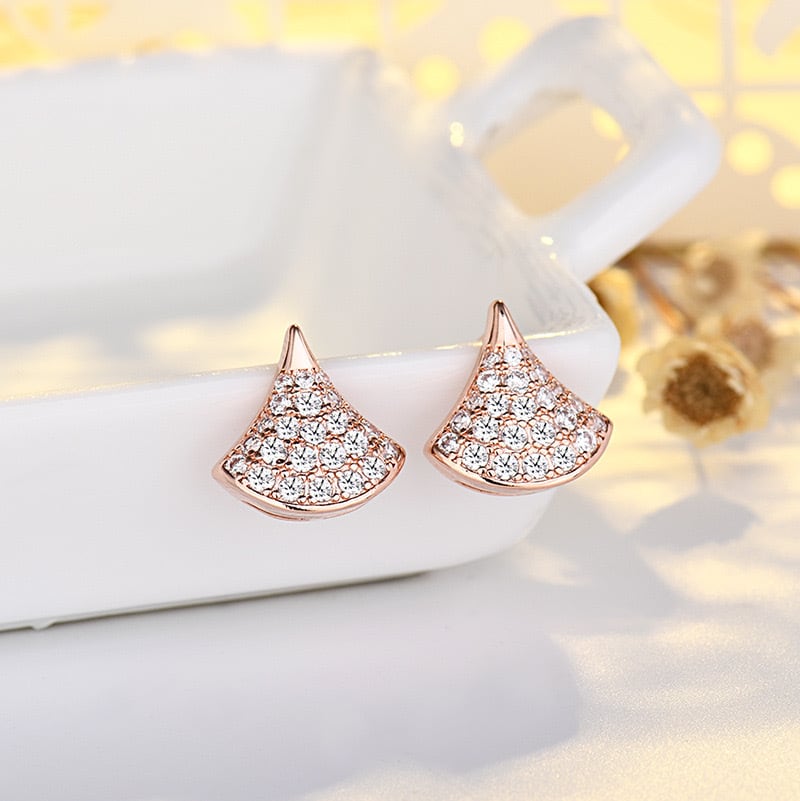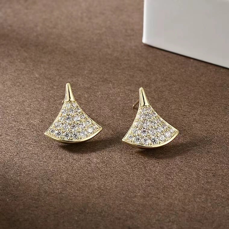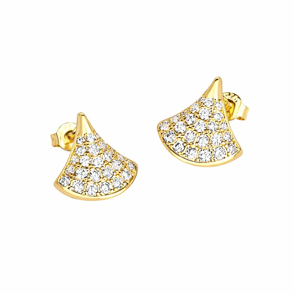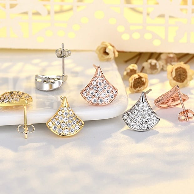 ピアス アレルギー対応 イチョウ 扇 S925 シルバー コーティング ピンク ゴールド キラキラ パヴェ CZ ダイヤ