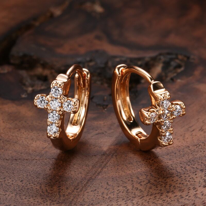 14KGP リングピアス アレルギー対応 14金 金メッキ 高級感 小さい 十字架 クロス CZ ダイヤ ローズゴールド