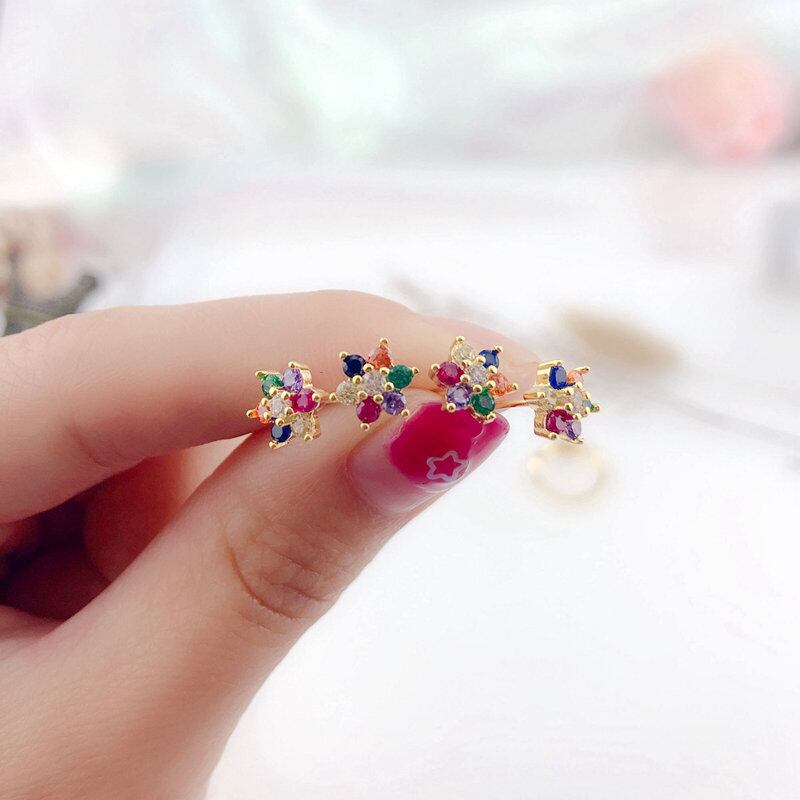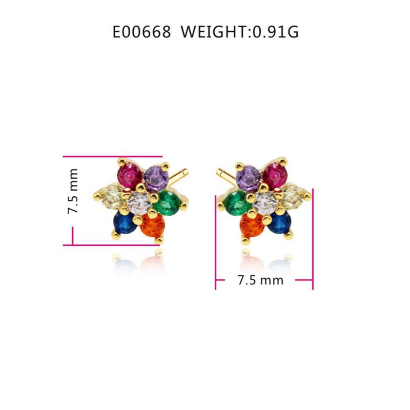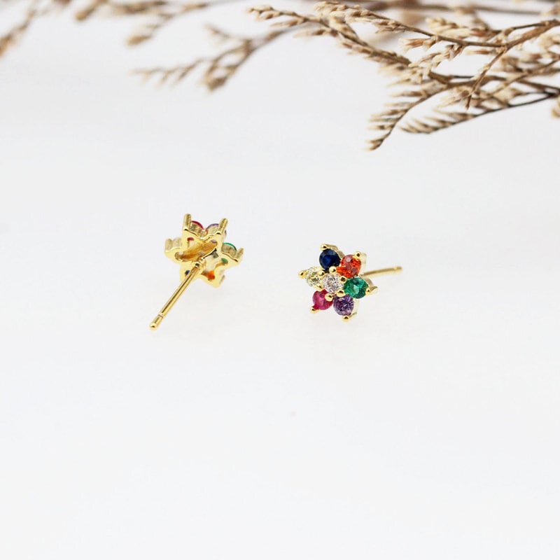 18KGP ピアス 7色 アミュレット フラワー 花 アレルギー対応 金メッキ ゴールド マルチカラー カラフル CZ ダイヤ シルバー